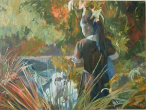 In my paintings, children on the edge of puberty ponder their future from their mythical childhood. The mood of the paintings is quiet and calm, a point of stillness where, as if by magic, time is detached from its linear progression.