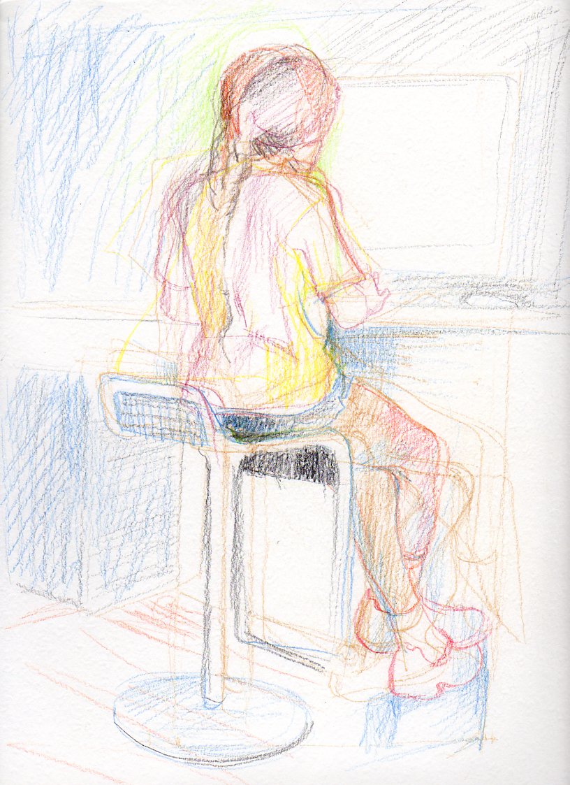As a starter, here is a drawing I made this morning, and if you follow the hyperlink on her name you will see the drawing replayed, including the squiggly play where I was testing out the new unfamiliar app that I was using today.