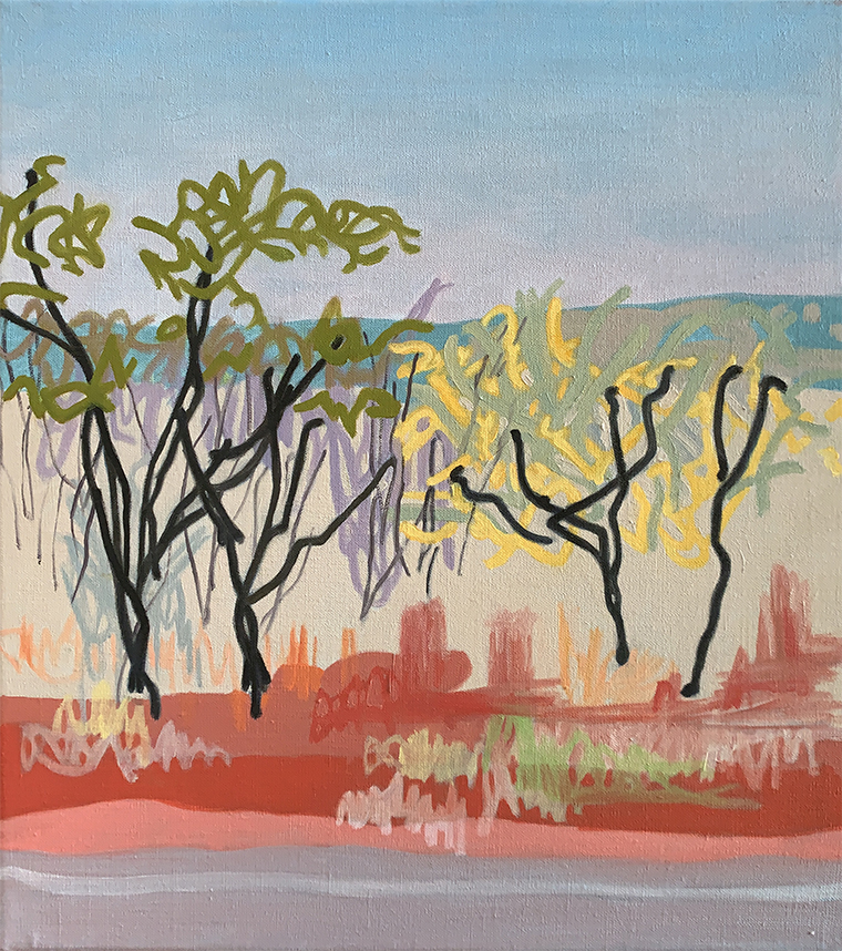17 Colour Notes, Saltbush and mulga, 2021, Oil on linen, 25cmx25cm SOLD