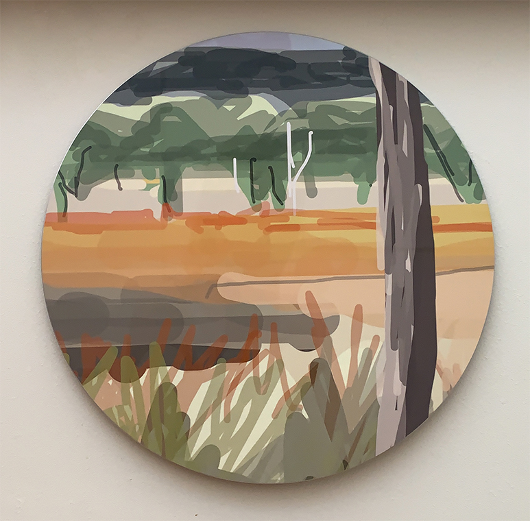 Each work began with an iPad finger drawing or painting made from life. Many were made whilst hurtling along the highway in a car.