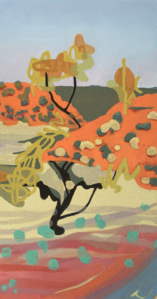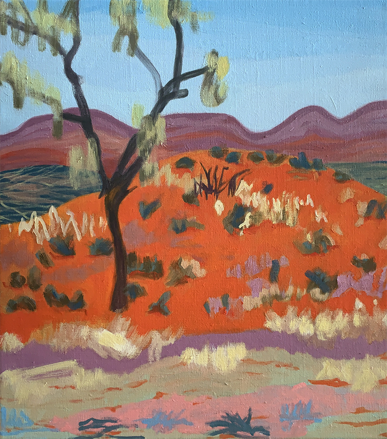 4 Hurtling to Watarrka, 2021, Oil on linen, 61cmx81cm, SOLD5 Hurtling from Tennant Creek to Daly Waters, 2021, Oil on linen, 60cmx90cm, $16006 Hurtling towards Uluru, 2021, oil on canvas, 36cmx66cm SOLD7 At Kantju Gorge, Uluru, 2021, Oil on linen, 40cmx46cm SOLD8 This side of sunset, Wugularr, 2021, 0il on linen, 40cm x 46cm SOLD9 Hurtling from Alice Springs to Kulgera, 2021, Oil on linen, 40cmx46cm SOLD10 Hurtling towards Elliot, 2021, Oil on linen, 40cm x 46cm SOLD